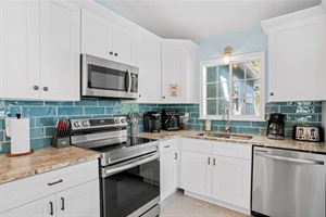 Gourmet kitchen with high-end appliances, perfect for family feasts or casual bites.